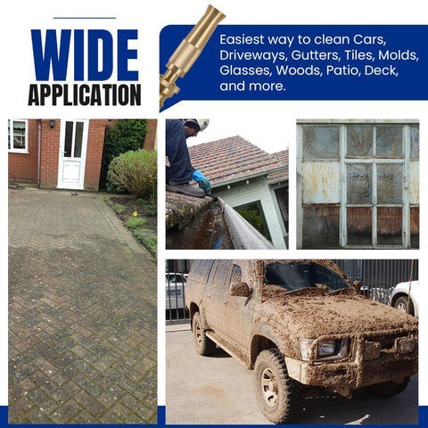 The high-pressure injectable nozzle has an adjustable water pressure of jet stream and fan wash. It makes it possible to remove large areas (such as Home, Garage, Car, Lawn, and more) of dirt and stains in just a matter of seconds! No Scrubbing is Needed!